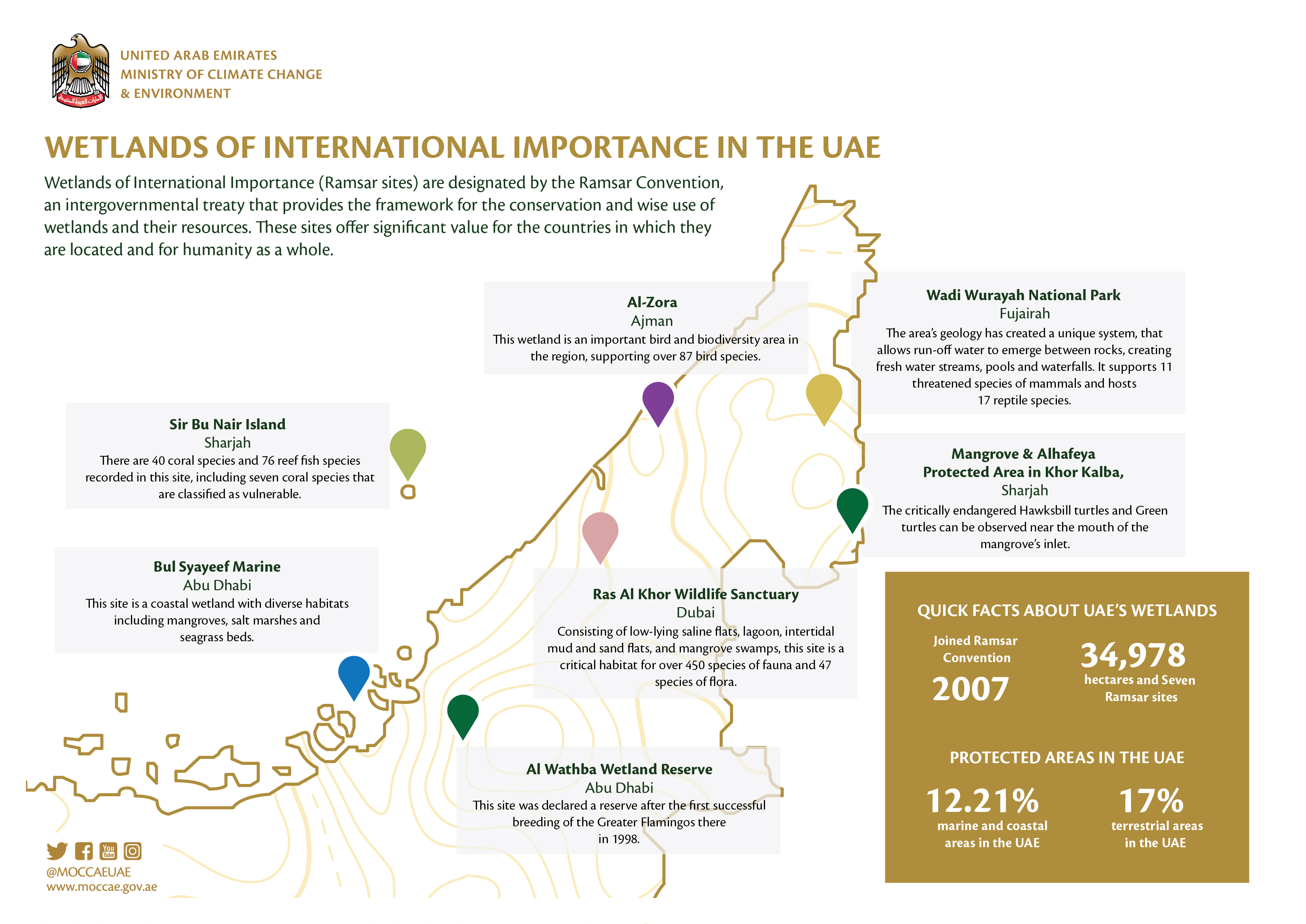 Considering that land and sea diversity is an integral part of the UAE's heritage, the Ministry of Climate Change and Environment continues to work, in collaboration with its partners, to strengthen efforts in this context through the implementation of a wide range of plans and initiatives in the framework of the National Biodiversity Strategy, the National Strategy to Combat Desertification and the Strategy for Sustainability of the Marine and Coastal Environment, among others.